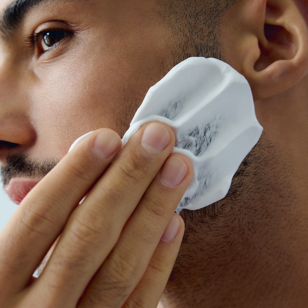 After shaving, rinse your face with lukewarm water. Dry your skin by patting it gently with a towel, avoiding rubbing as this can further irritate the skin, and then apply a post-shave balm.