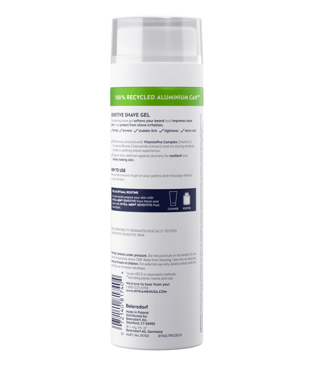 - Soothes Sensitive Skin: NIVEA shave gel for men soothes sensitive skin and protects against shaving irritation.